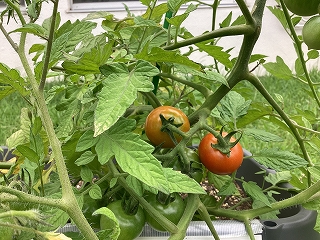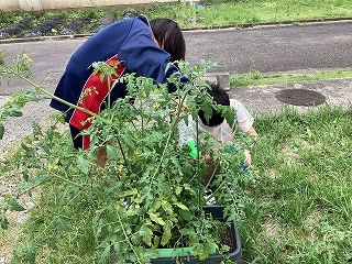 6月19日の昼休みに社会生活の授業で植えたトマトを見に行きました。この間より成長していたので、液体肥料を与えました。赤くなっていたので、もう少し成長したら食べられそうです。