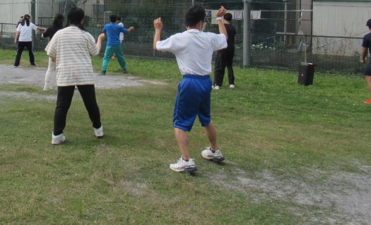 4月12日、高等部3年生も体力づくりをはじめています。ムリなく少しづつ、体をこれからの活動的な季節の訪れに合わせ、慣れさせていきます。まずは基本的な動きから・・・。