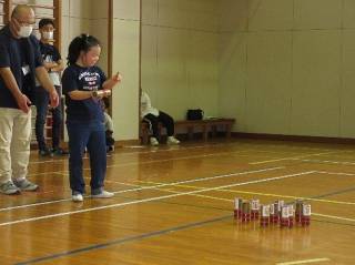 【モルック】チーム戦を行いました。チームのみんなと協力して戦い、モルックでスキットルを倒すたびにみんなで喜びました。絶対負けない!勝ってやる!