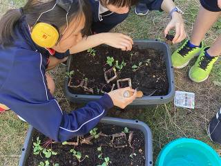 10月23日、二十日大根が成長したので、植え替えをしました。虫や鳥に食べられないように、最初は屋内で育てて、ある程度成長したら今度はプランターで育てます。みんなも一生懸命頑張っていました。早く成長してほしいです。