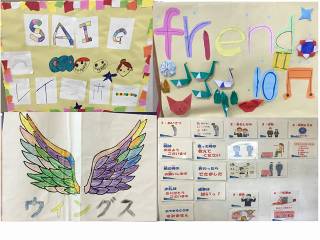 5月9日、美術の時間にみんなでガーランドを作りました。たくさんの葉っぱに一人ひとりのフラッグがついています。フラッグにはみんなが好きな絵や模様、自己紹介が書かれています。とても楽しく作れました。以前と比べて、廊下が賑やかになりました。