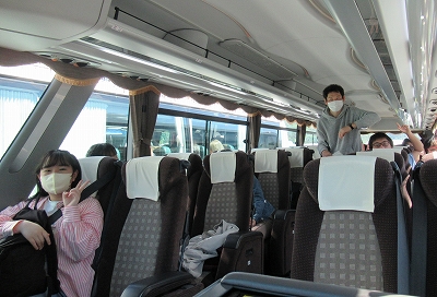 【バス移動】バスの中では、やませみの歌を歌いました!みんなで楽しく歌ってとっても楽しかったなぁ♪歌以外でも友達とたくさんお話しました。みんなと「やませみ楽しみだね」と言いながら楽しく会話しました!