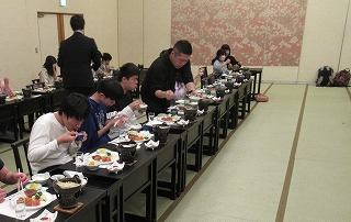 河口湖荘で昼食をとりました。湖を見渡せる席で楽しく食べられました。