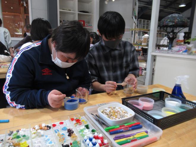 6月30日に校外学習で愛川公園へ行きました。梅雨の時期ということで雨が降りましたが、生徒たちは雨具を身に着けてしっかりと歩くことができました。陶芸体験ではお皿づくりに挑戦しました。板状の粘土をお皿の形にして、思い思いの模様のスタンプを押しました。焼き上がりが楽しみです。