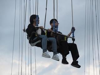 怖くないー!やっぱり怖かった。手に力が入ります。空中ブランコは気持ちよかったです。