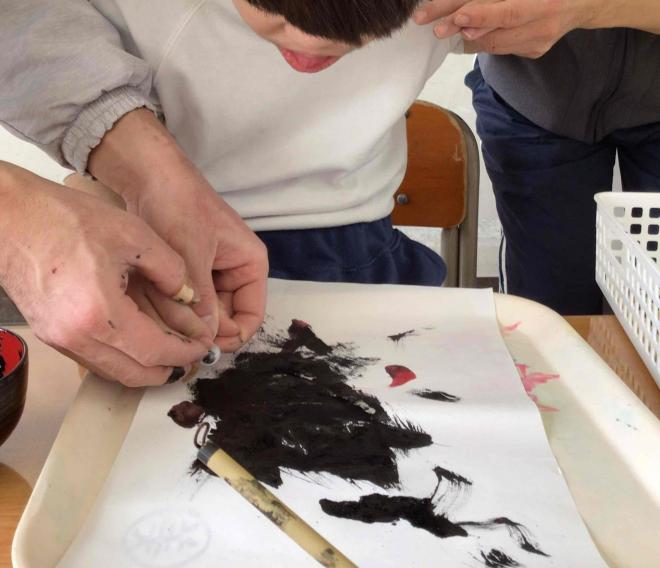 1月19日、思い思いに筆を動かし、辰を描くことができました。