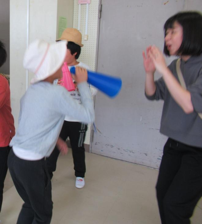 5月17日、音楽の学習で「ヤッホー」の曲に合わせてみんなでヤッホー!!たくさん笑顔が見られました!