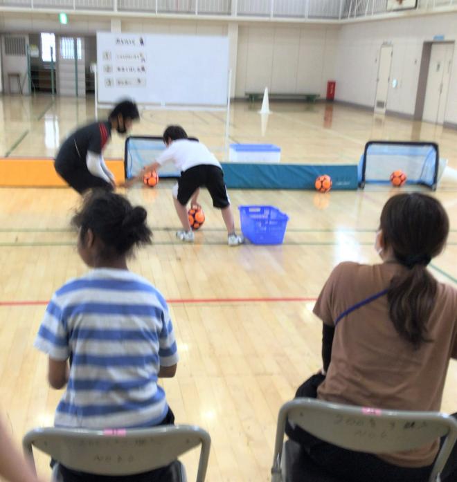 6月16日、ボールをよく見て。ゴールに向かってシュート!ボールがゴールに入ると、みんな大喜びです!