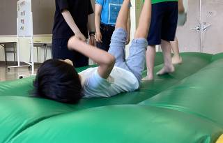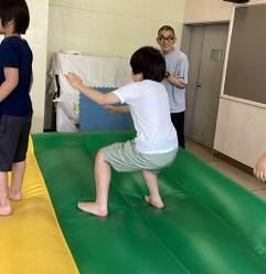 7月13日、エアトランポリンでジャンプ!みんなで楽しく運動することができました!