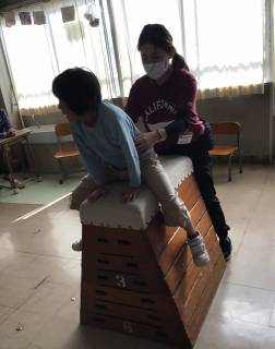 10月12日、体育の授業では跳び箱や平均台を楽しみました!ちょっとこわいかな~。