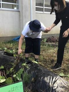 10月30日、さつまいもほりを行いました。教室でペットボトルに紐をつけて練習をし、成果を発揮して抜くことができました。