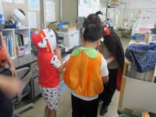 トリック・オア・トリート!校内を変装して歩くことができました。