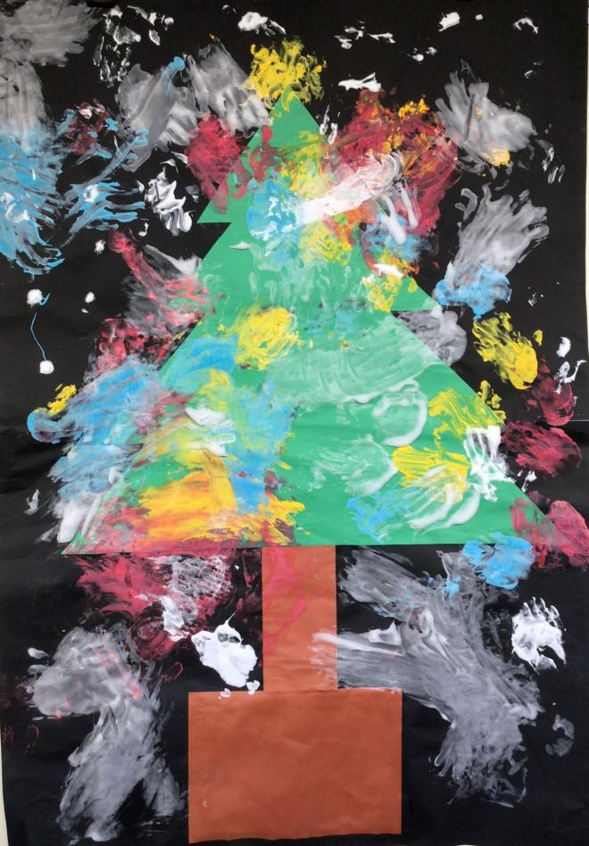 12月13日、クリスマスツリーに手形スタンプでイルミネーション!楽しく活動できました!
