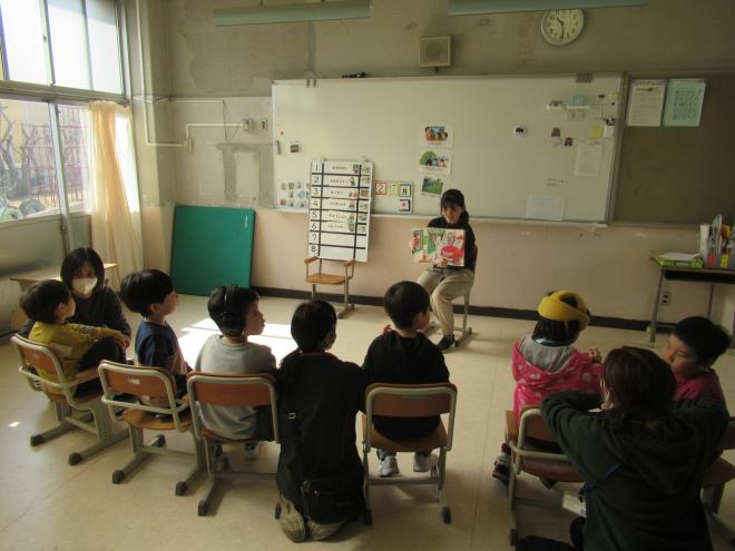 昨年度に引き続き、今年度も「イオンフードサプライ株式会社」より大型絵本を3冊寄贈していただきました。12月17日(火曜日)グループことば・かずの時間に小学部低学年、高学年に分かれてイオンフードサプライの社員の方による絵本の読み聞かせをしてもらいました。