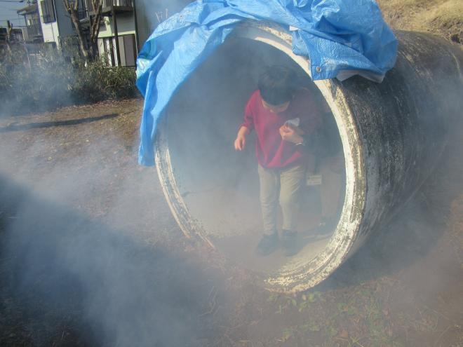 2月17日、防災学習の一環でけむり体験をしました。中庭の土管がもくもく。真っ白で中は見えづらかったですが、みんな勇気をだして歩きました。実際には起こってほしくない災害ですが、備えることは大切ですね。