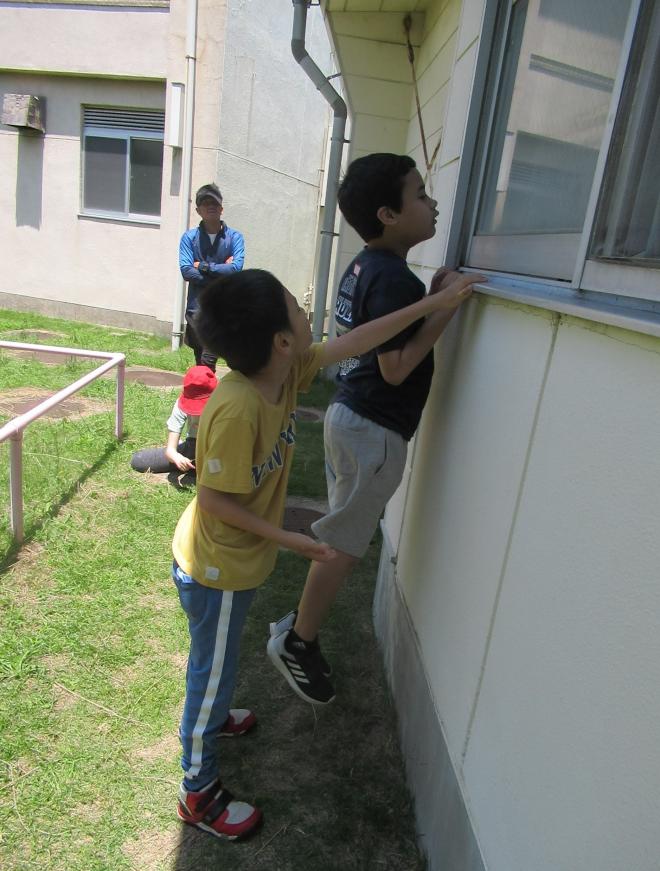 6月11日、小学部高学年で2グループに分かれて歩行へレッツゴー!!1グループは遠い公園まで頑張って歩きました。2グループ目は短めのコースを歩いて中庭遊び!でも、プールがうらやましくて遊びよりプールがいい!と、じーっと覗いていました。