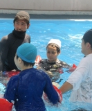 6月20日、小学部低学年もついにプール開きです!みんな大好きな水遊び、大きなプールに入る前に小さなプールでたくさん遊びました。