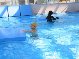 7月4日、小学部低学年で水泳指導(プール)を行いました。今年初めての大きなプールです!みんなで手をつないで輪になったり、ぷかぷか浮いたり、元気いっぱい楽しみました。