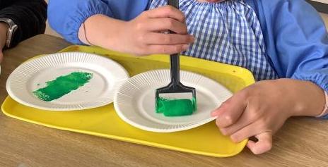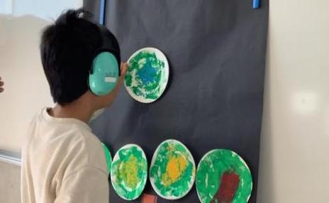 5月21日のり絵の具で作品作りをしました。色が混ざる世界を、眼鏡を使って体感した後、絵の具を混ぜて色付けしました。