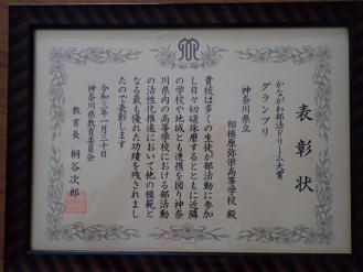 令和2年度「かながわ部活ドリーム大賞」において、「総合的に最も優れた成果や実績をあげた学校」との評価をういただき、グランプリを受賞することができました。今回の受賞は7年ぶり、3度目の受賞ということになります。(平成21年度、25年度に受賞)また、「かながわ部活ドリーム大賞」は、グランプリ・準グランプリの他に、団体の部3部門、個人の部6部門の計9部門が設けられていますが、全ての部門において受賞することができました。