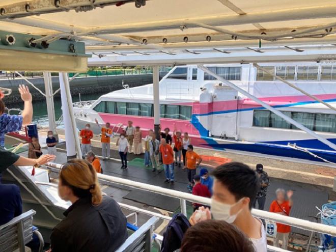 中町港で、民泊先の皆さんと市役所の方から見送っていただきました。