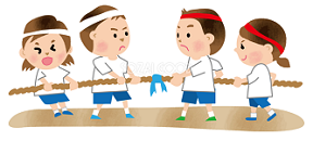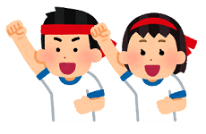 競技は台風の目、玉入れ、8の字大縄跳び、クラス対抗リレー、綱引き、部活対抗リレー、(マル秘)、色別対抗リレーです。