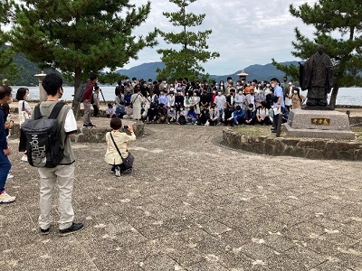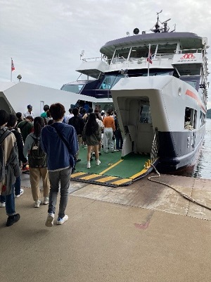3日目(最終日)の午前中は宮島の見学。安芸の宮島は天橋立(京都府)・松島(宮城)と並ぶ日本三景の一つです。船に乗って宮島に行きます。