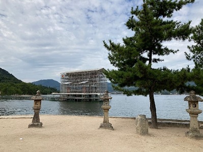 残念ながら厳島神社の大鳥居は修理工事中でした。(今年の12月までの予定)あと3ヶ月後だったら…残念。上段左は乗船時ですね。真ん中は桟橋にたたずむ3人(笑)右は鹿が増殖中。下段左は工事中の大鳥居、右は集合写真撮影中です。見ればわかるか…。