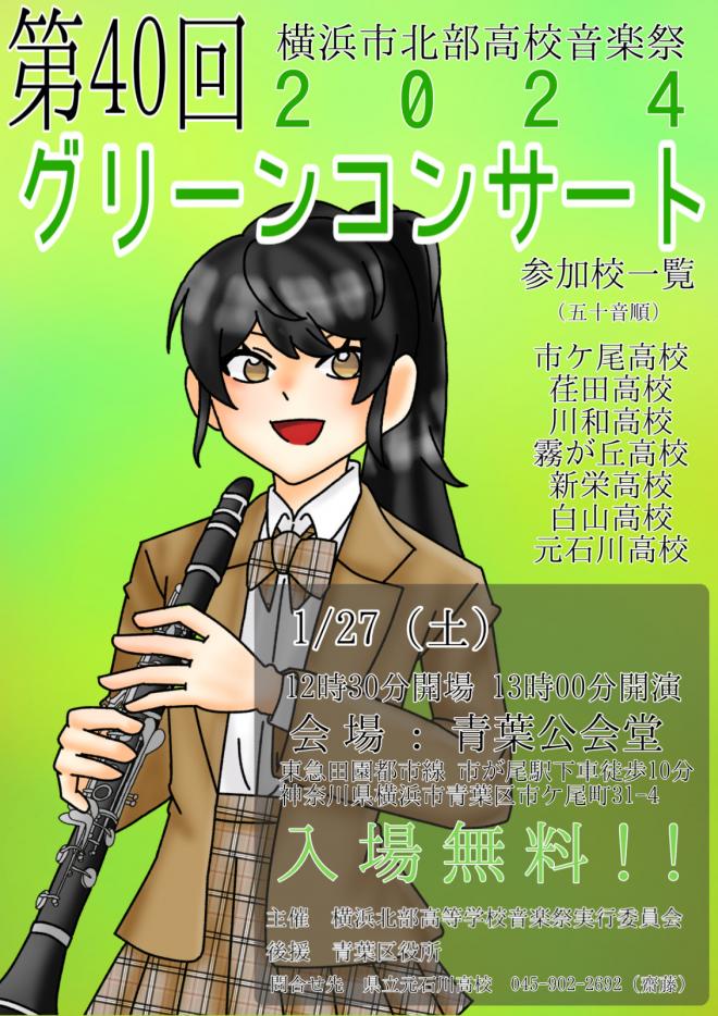 1月27日(土曜日)本校吹奏楽部が「グリーンコンサート」に参加します。
