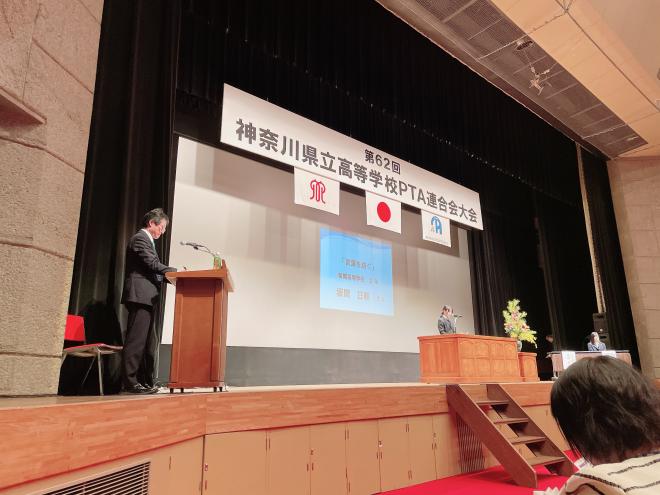 最優秀賞を受賞した坂間日和さん(1年)は、12月21日に行われた高等学校PTA連合会の大会会場にて、作文の朗読を行いました。
