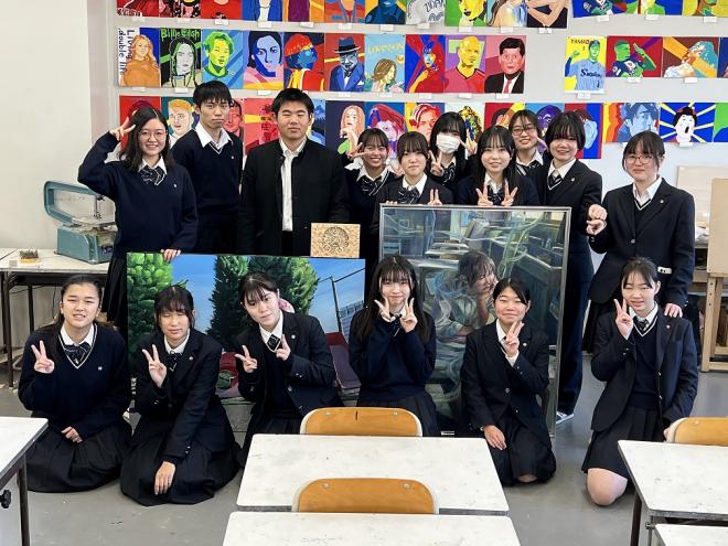 平面部門:1年田中結奈「あの公園」奨励賞 2年速水千佳「着想」奨励賞