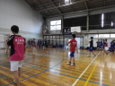 バドミントン部は、県大会出場を主な目標として日々の練習に取り組んでいます。他校との練習試合を通して、確実にバドミントン部全体のレベルが上がってきています。また、この部活の一番の利点は男女一緒に練習していて先輩後輩の仲が良い所です。お互いの思う意見を遠慮なく言えるので、部活としての士気も高まり、学年を超えてコミュニケーションが取れます。バドミントンに興味がある方や、いろんな人と関わってみたい人は是非見学しに来てください。