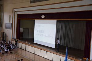 その後、1学期間の各部活動の活躍を振り返り、夏休みの更なる飛躍に向けた全部活動の集会がありました。