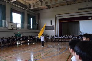 体育祭の各色(赤・青・白・黄)に分かれて、色別集会が行われました。体育祭のテーマ「#城郷魂~いい波のってんね~」を発表した後は、それぞれの色の応援団を中心に、団結を誓いました。来週の中間テストが終わるといよいよ体育祭ムードになります。テストも体育祭も、万全の準備で臨みましょう。