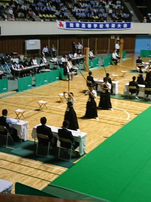 弓道部3年の宇都宮さん、伊藤さん、藤原さんと2年の手塚さんが8月18日・19日に行われた全国高校遠的弓道大会に女子団体の部で出場しました。全力を尽くしましたが、予選敗退となりました。応援、ありがとうございました。
