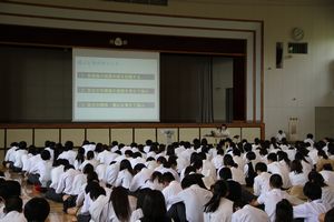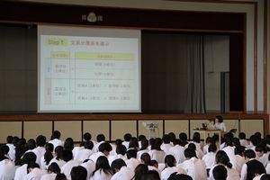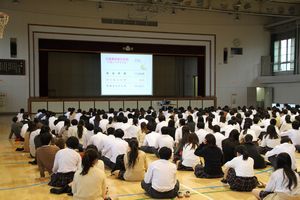 1・2年生を対象とした選択科目説明会を体育館で行いました。次年度に向けて1年生は大まかに理系・文系の選択を、2年生は自分の進路実現にさらに近づくために、科目を選択していくことになります。