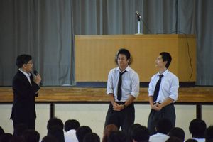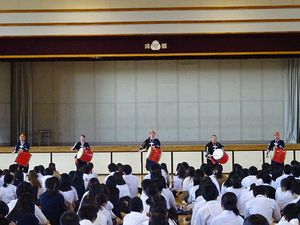 琉球太鼓の演奏団体の方にお越しいただき、修学旅行の事前学習としてエイサーを鑑賞しました。待ちに待った修学旅行も今月末に迫ってきました。準備をしっかり行って、充実した修学旅行にしましょう!
