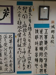片倉町駅通路に本校生徒の美術・書道作品が展示中です。城峰祭にお越しの際には、ぜひご覧ください。