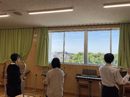 | 音楽室での練習風景 | 音楽室は5階なので景色は良いです |