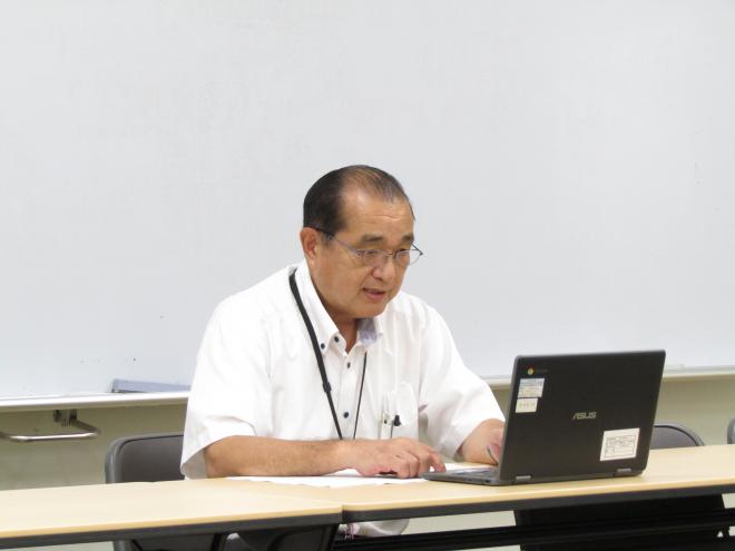 新型コロナウイルス感染症の蔓延防止の観点から、今回もオンラインのリモート形式とし、生徒は教室のプロジェクターで視聴しました。