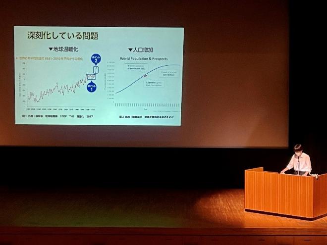 「食料問題から考える地球の未来」をテーマに、代替肉(大豆ミート)の普及に関する研究活動を行い、発表しました。当日は、写真やグラフの提示だけでなく、FMヨコハマ様協力のもと作成したラジオCMを流すなど工夫を凝らした10分間の発表を行いました。