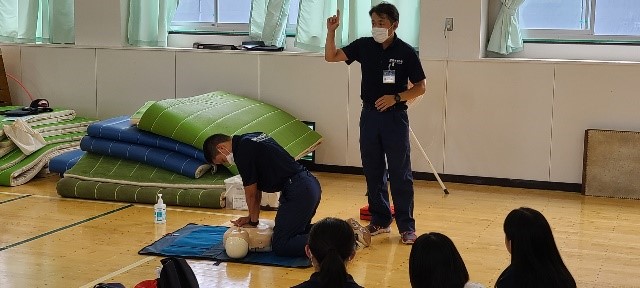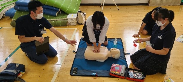 生徒より「胸骨圧迫を救急の方が来るまで続けるのはとても大変だと思いました。」