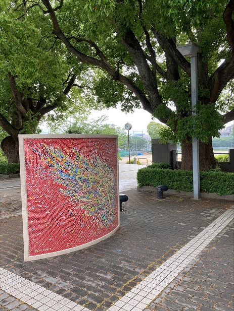 2021年5月1日、本校が創立100周年を迎えました。本校同窓会である湘友会の皆様のご尽力により、記念事業として、初代校長・赤木愛太郎先生を称える赤木苑の改修、およびモザイク画「飛翔」のモニュメントの寄贈が行われました。