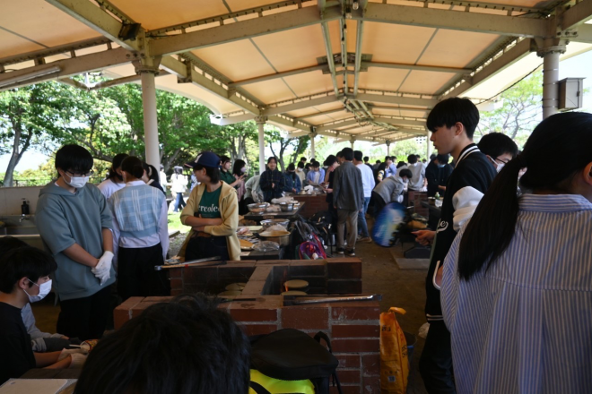 片付けが終わった班から自由時間になりました。 いろいろな面白い遊具もあり、楽しむ姿がたくさん見られました。 力を合わせてカレーを作って、全力で遊ぶことを通して高校でできた新しい友達との絆が深まった遠足でした!