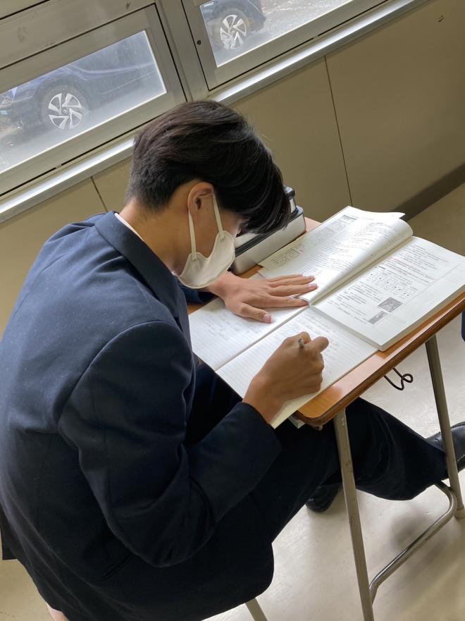 2年生は中間試験の次の週が修学旅行という予定なので、準備に追われながらの試験勉強はなかなか大変でした。しかし、待ちに待った修学旅行です。試験のことはいったん忘れて、沖縄の歴史や文化を学び、沖縄の自然の中で友人たちと存分に楽しんできたいと思います!