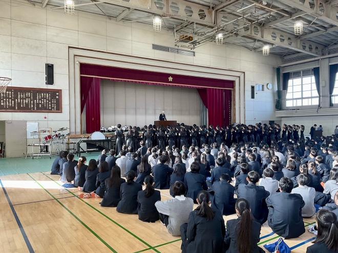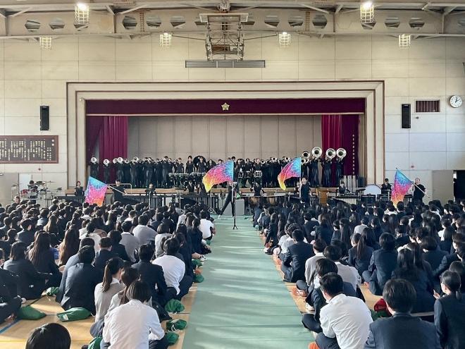 生徒会長、校長からの激励の言葉に続き、吹奏楽部のパフォーマンスがありました。