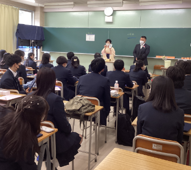 動画視聴が終わった後、それぞれのクラスの最後のホームルームが行われました。一人ひとりの卒業証書授与や担任の先生が卒業生へ贈ることばなど、ホームルームのあり方はクラスによってさまざまでした。
