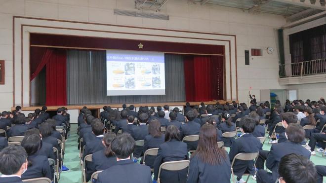 1年生は交通安全講演会がありました。自転車で通学する生徒も少なくない中、湘南台自動車学校の方のお話を真剣に聞いていました。