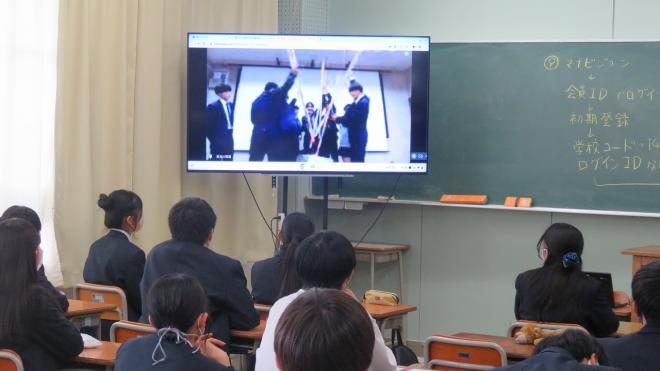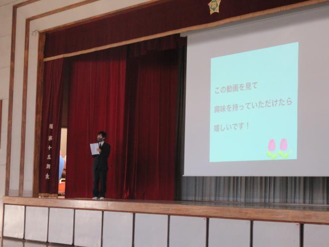 卒業式が終わった後、卒業生が作った動画を視聴しました。中にそれぞれのクラスの思い出が詰まった写真や動画がたくさんありました。