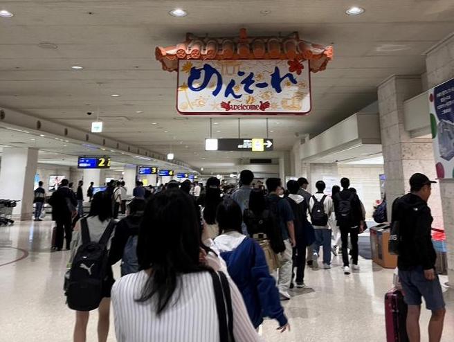 修学旅行1日目、全員が無事に羽田空港に集合し、沖縄へ向けて出発しました。